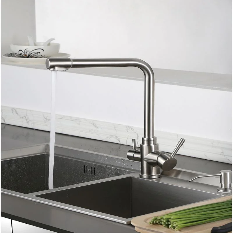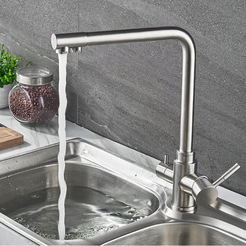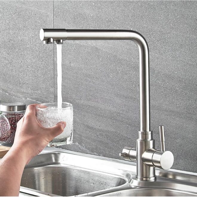 Τρίοδη γωνιακή βρύση κουζίνας για κρύο / ζεστό και φιλτραρισμένο νερό.